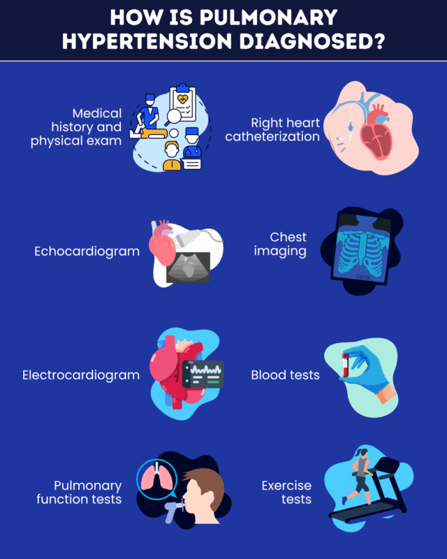 - Chest imaging, echocardiogram, and electrocardiogram: These can help identify underlying heart and lung diseases that cause PH.
